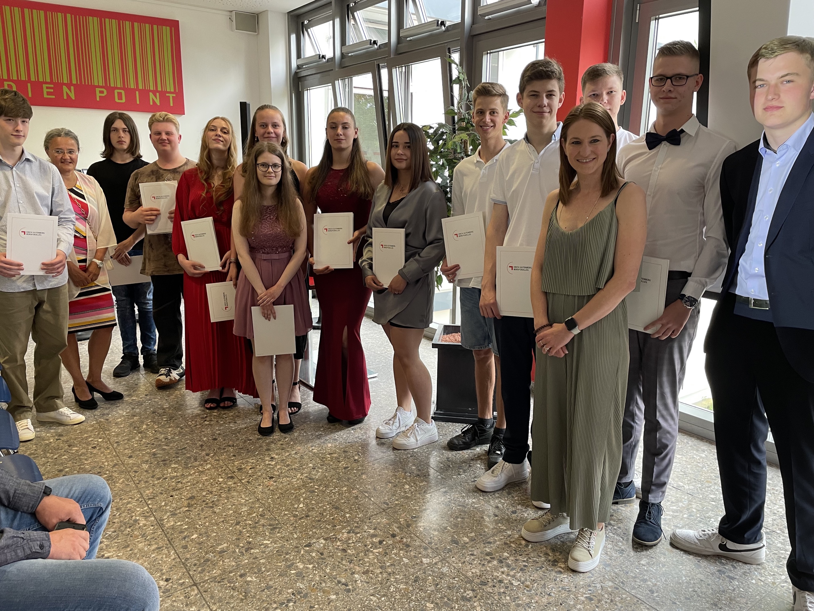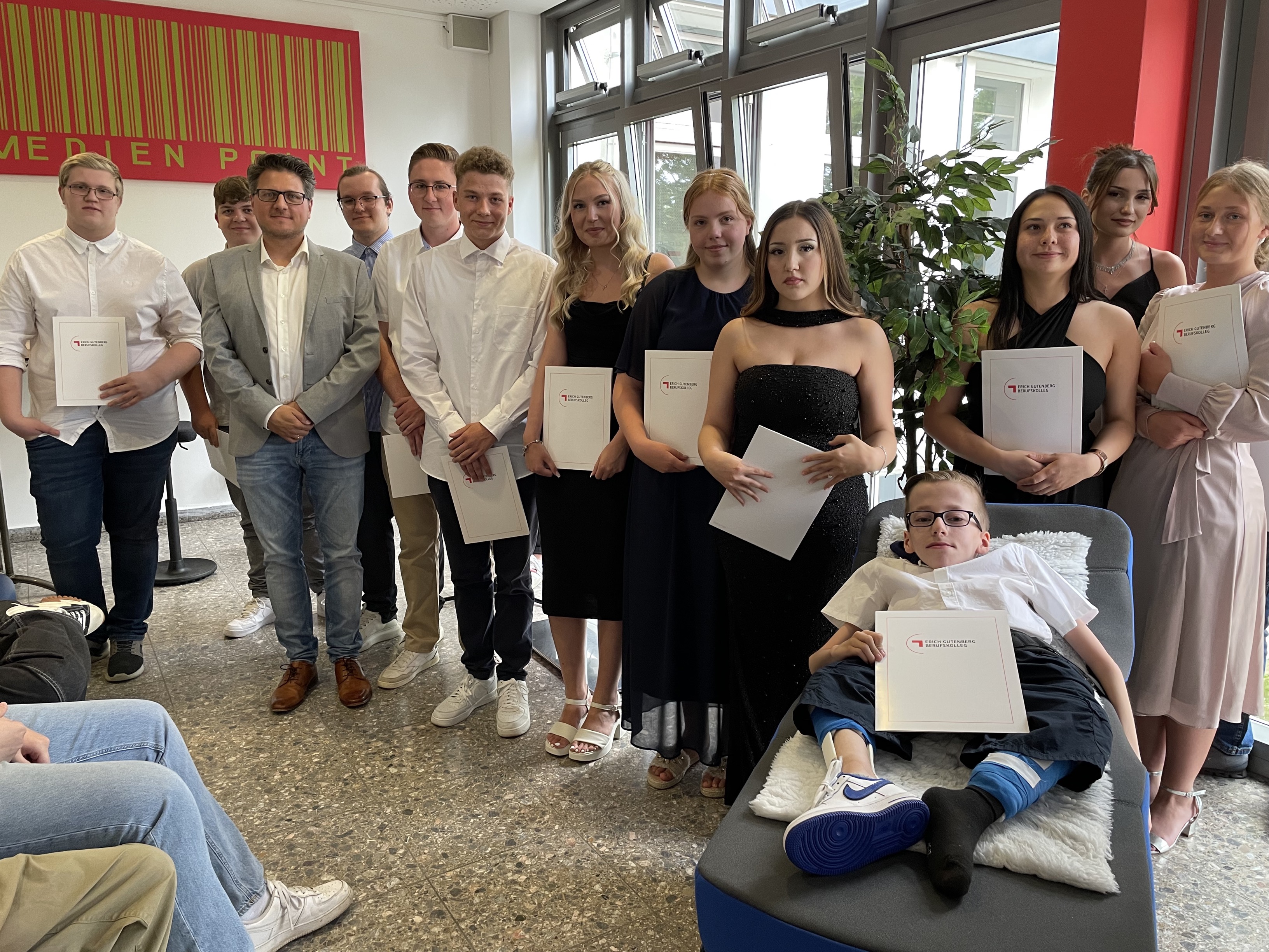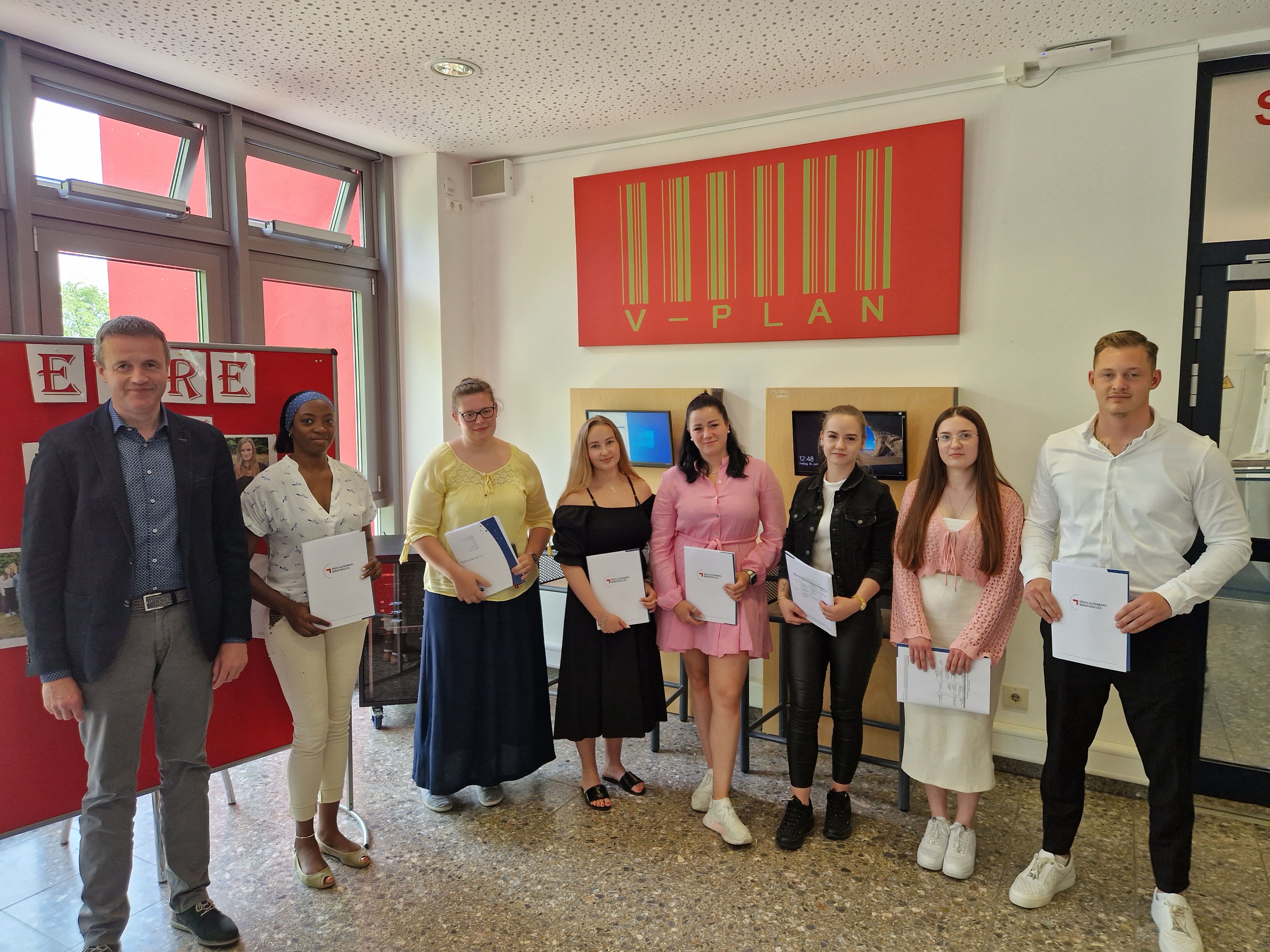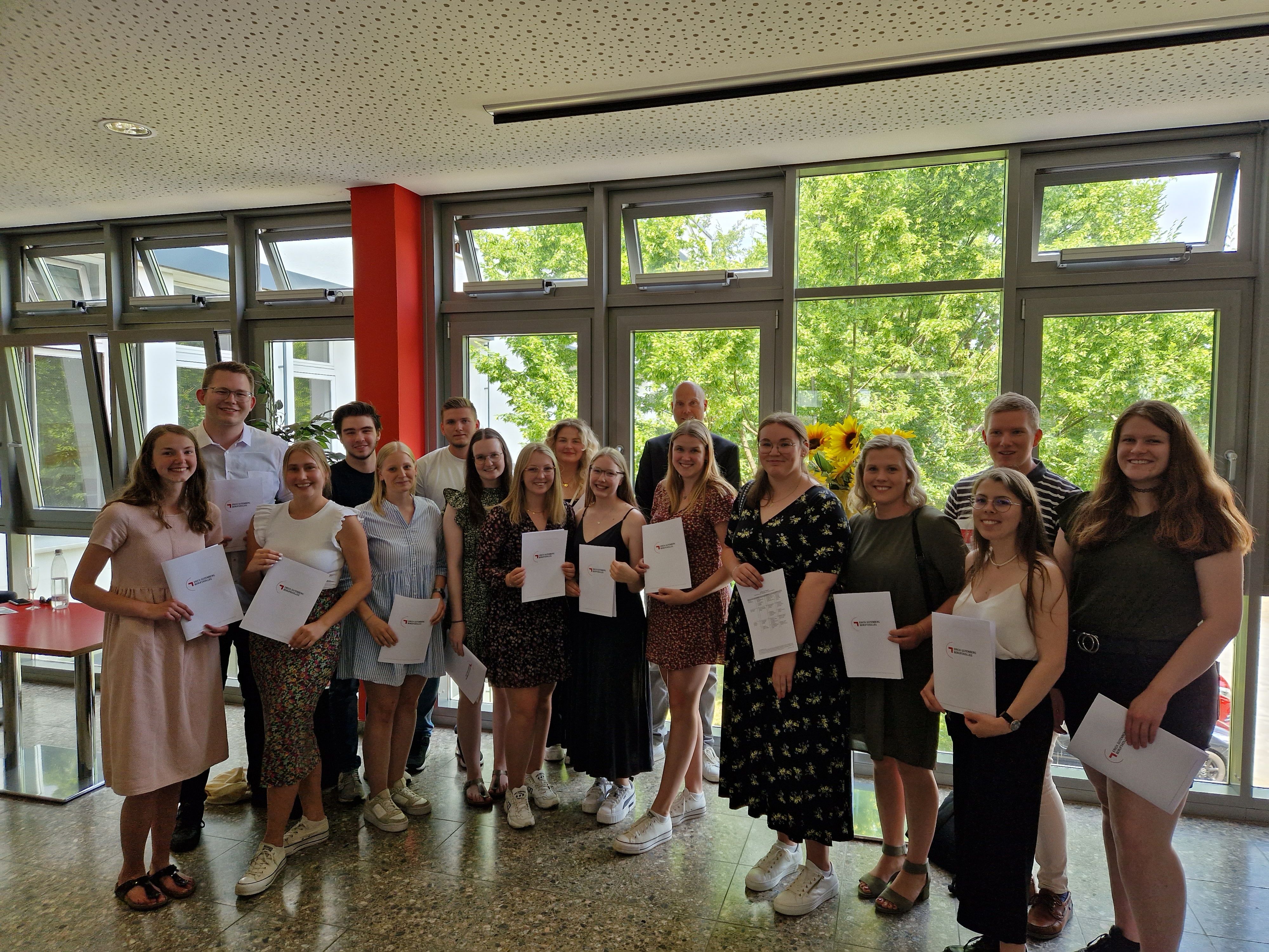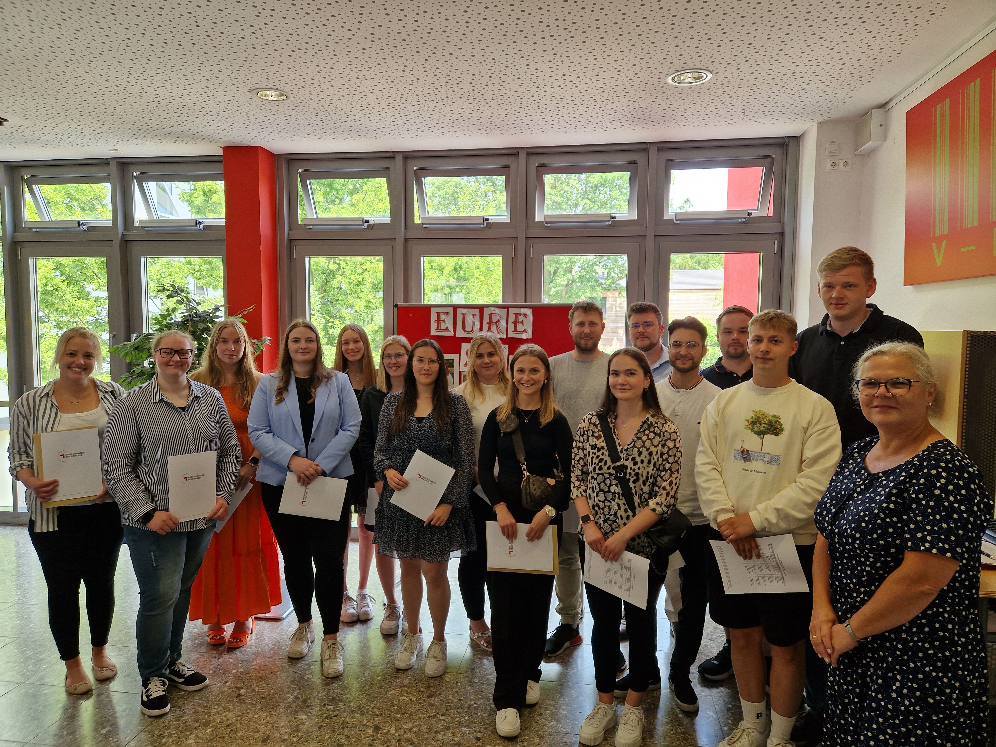 Am Freitag, dem 09.06.2023, wurden die erfolgreichen Absolventinnen und Absolventen der Berufsfachschule des Erich-Gutenberg-Berufskollegs verabschiedet.