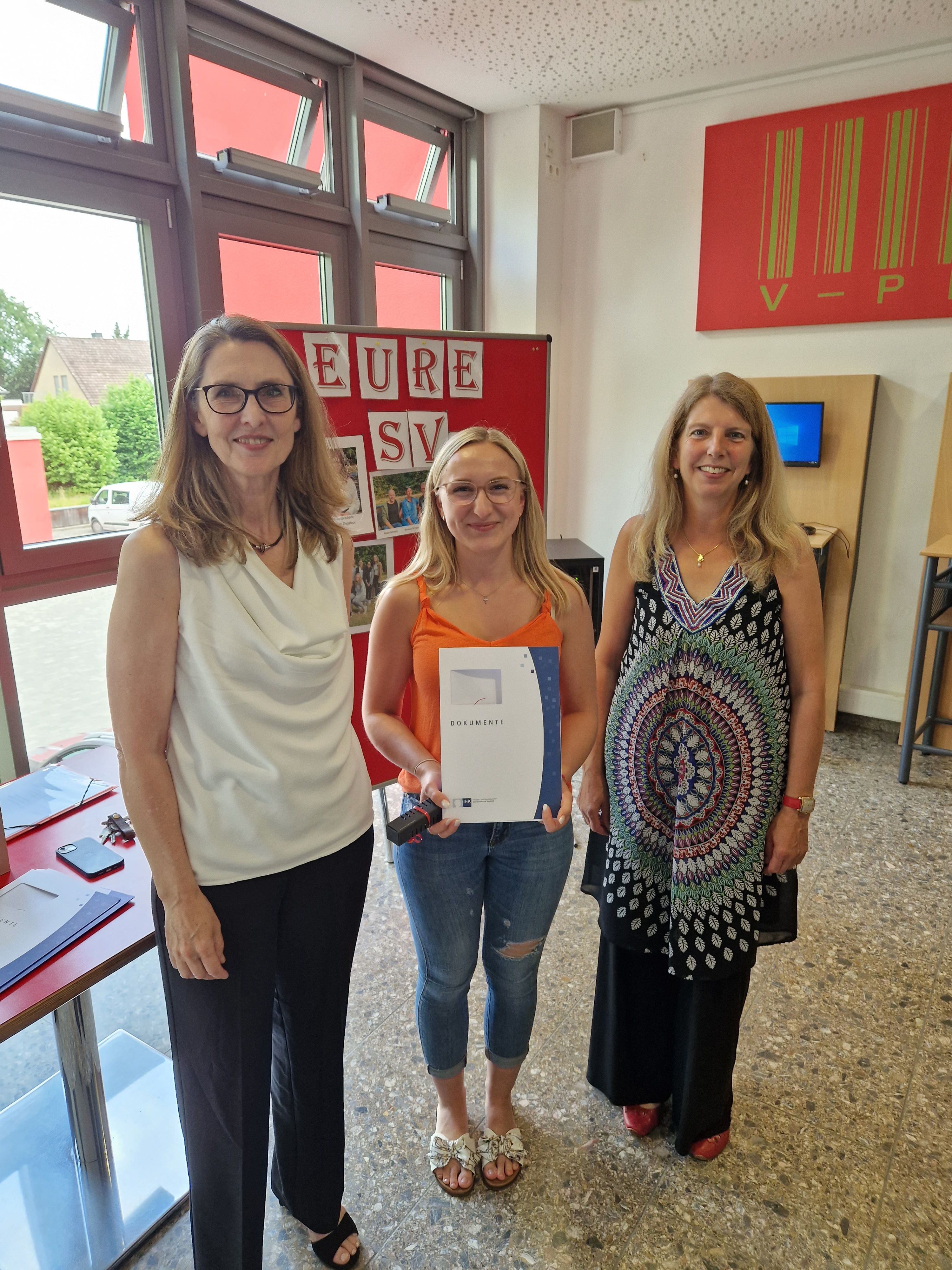 Frau Dr. Dettmer (Leiterin der Handelsschule) übergab die Zeugnisse und blickte im Rahmen einer gemeinsam gestalteten Feierstunde zusammen mit den Schülerinnen und Schülern und deren Eltern auf das vergangene Schuljahr zurück.