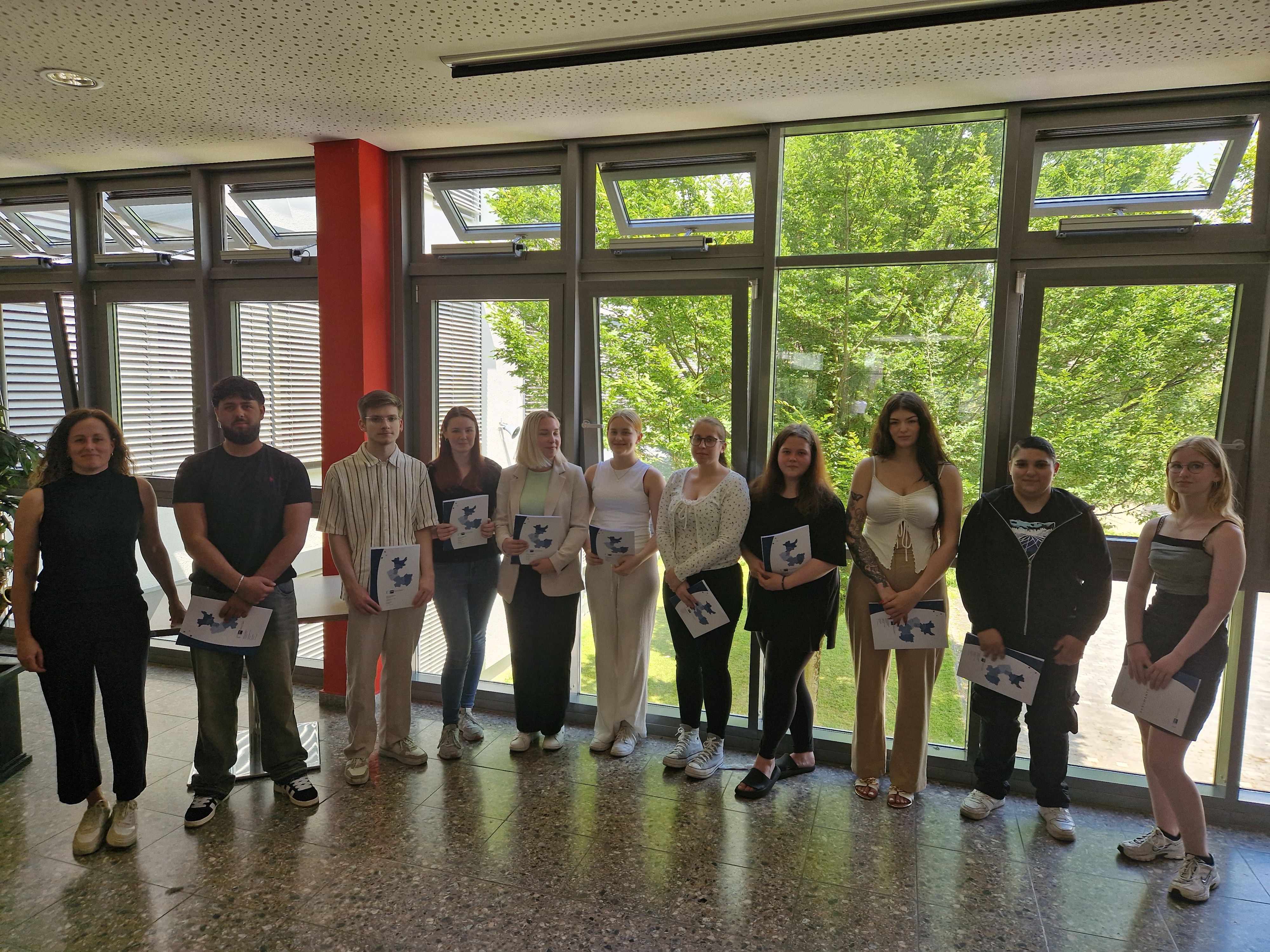 Am Donnerstag, dem 27.06.2024, wurden den 56 erfolgreichen Absolventinnen und Absolventen der zweijährigen Berufsfachschule in feierlichem Rahmen ihre Abschlusszeugnisse verliehen.
