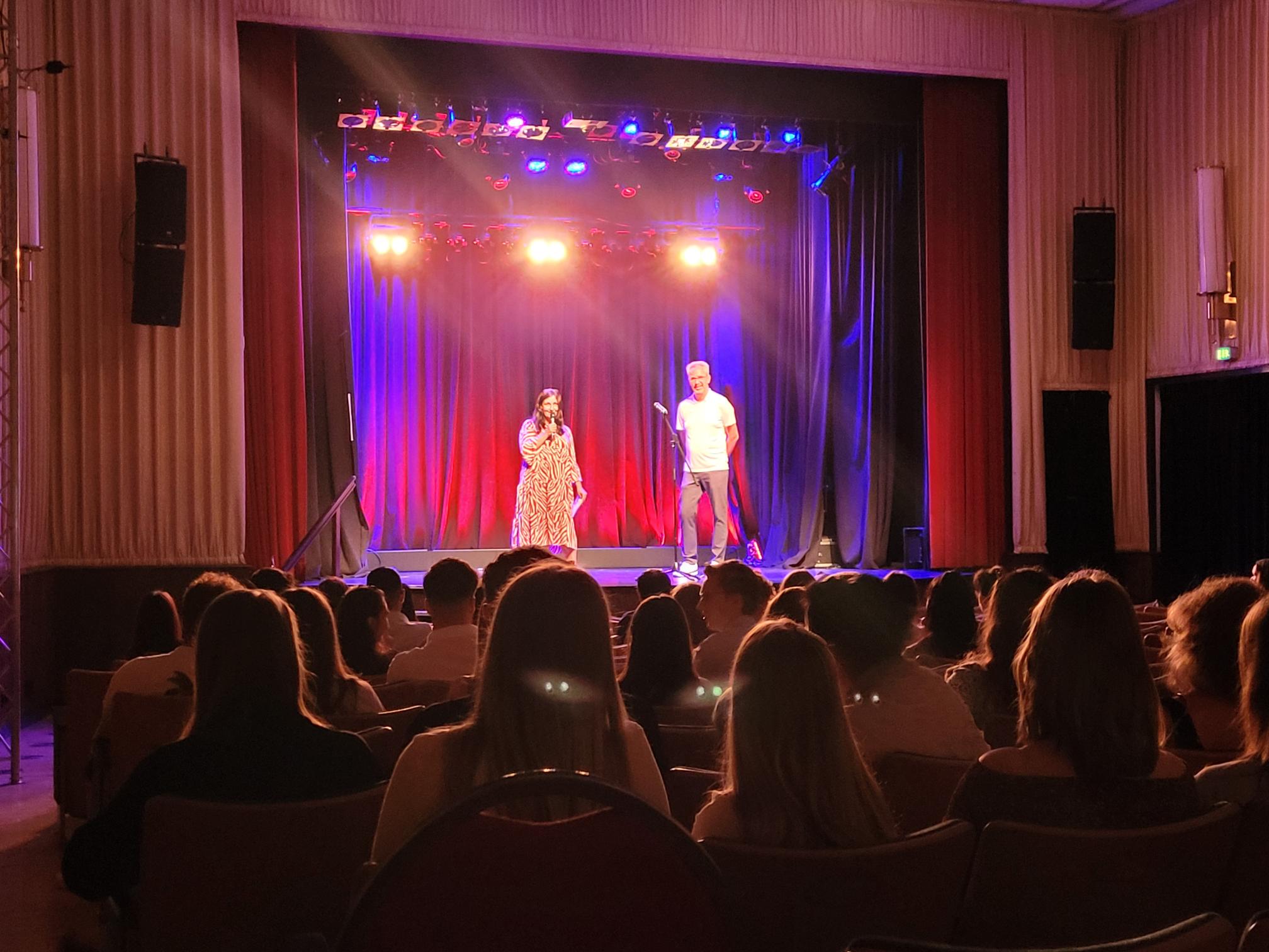 In einem Workshop mit dem Slam-Poeten und Autor Henrik Szanto verfassten die Schüler*innen der Klassen HY001. HY002 und HY101 des Wirtschaftsgymnasiums literarische Texte vielfältigster Art. Als Abschluss fand am Mittwoch eine große Abschlussveranstaltung im Bünder Universum statt, welches Dank der Unterstützung der Sparkasse Herford für diesen Zweck genutzt werden konnte. Einige Schüler*innen ließen die Besucher*innen an Ihren Werken teilhaben und präsentierten sie an diesem Abend vor Freunden, Verwandten und Lehrer*innen auf der Bühne des Universums.