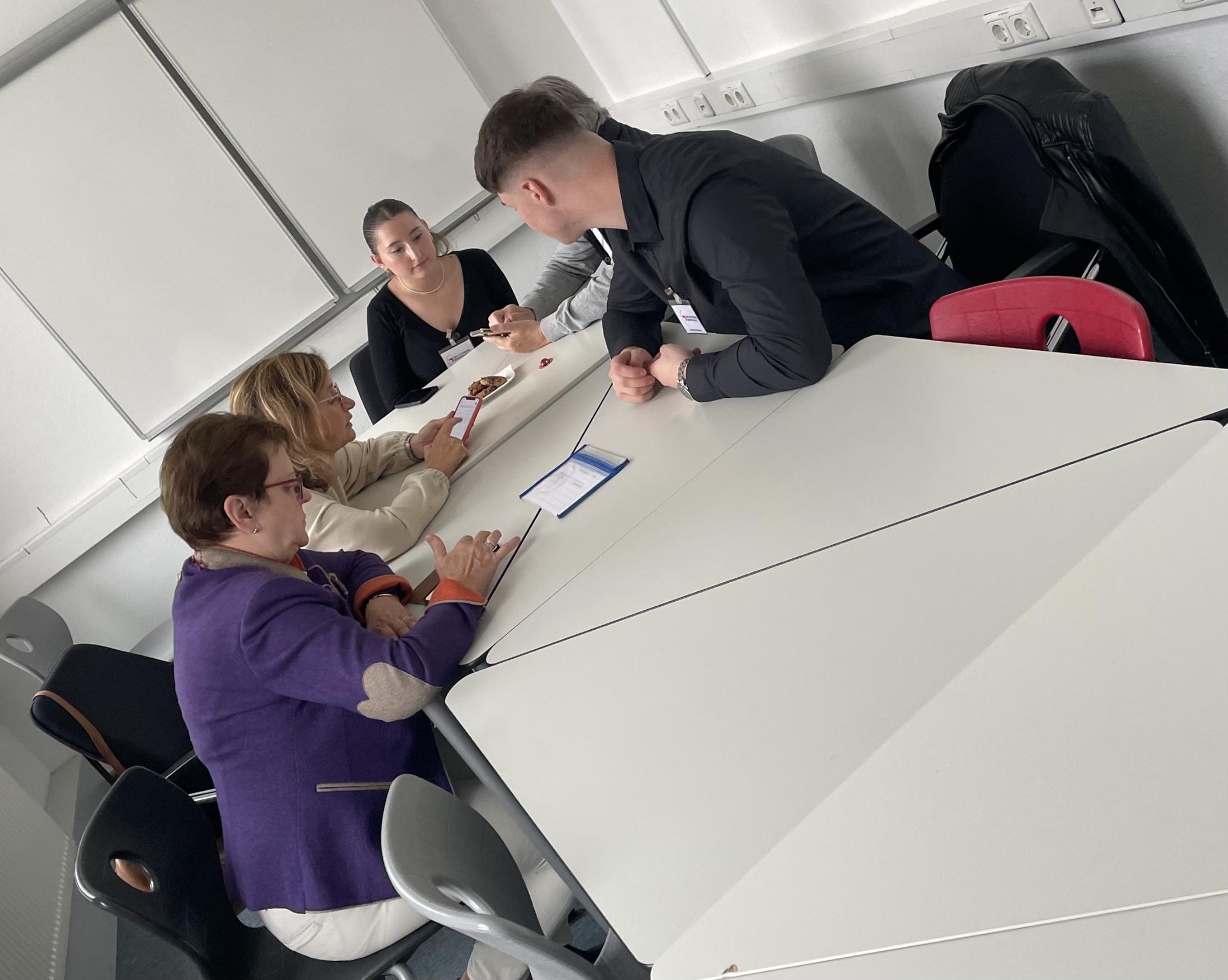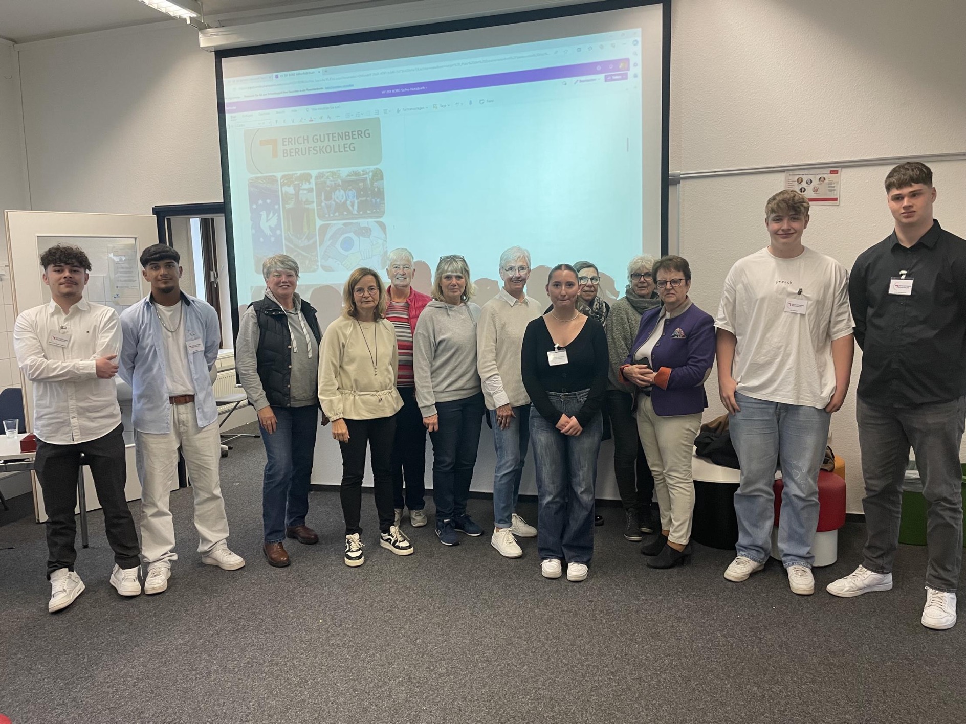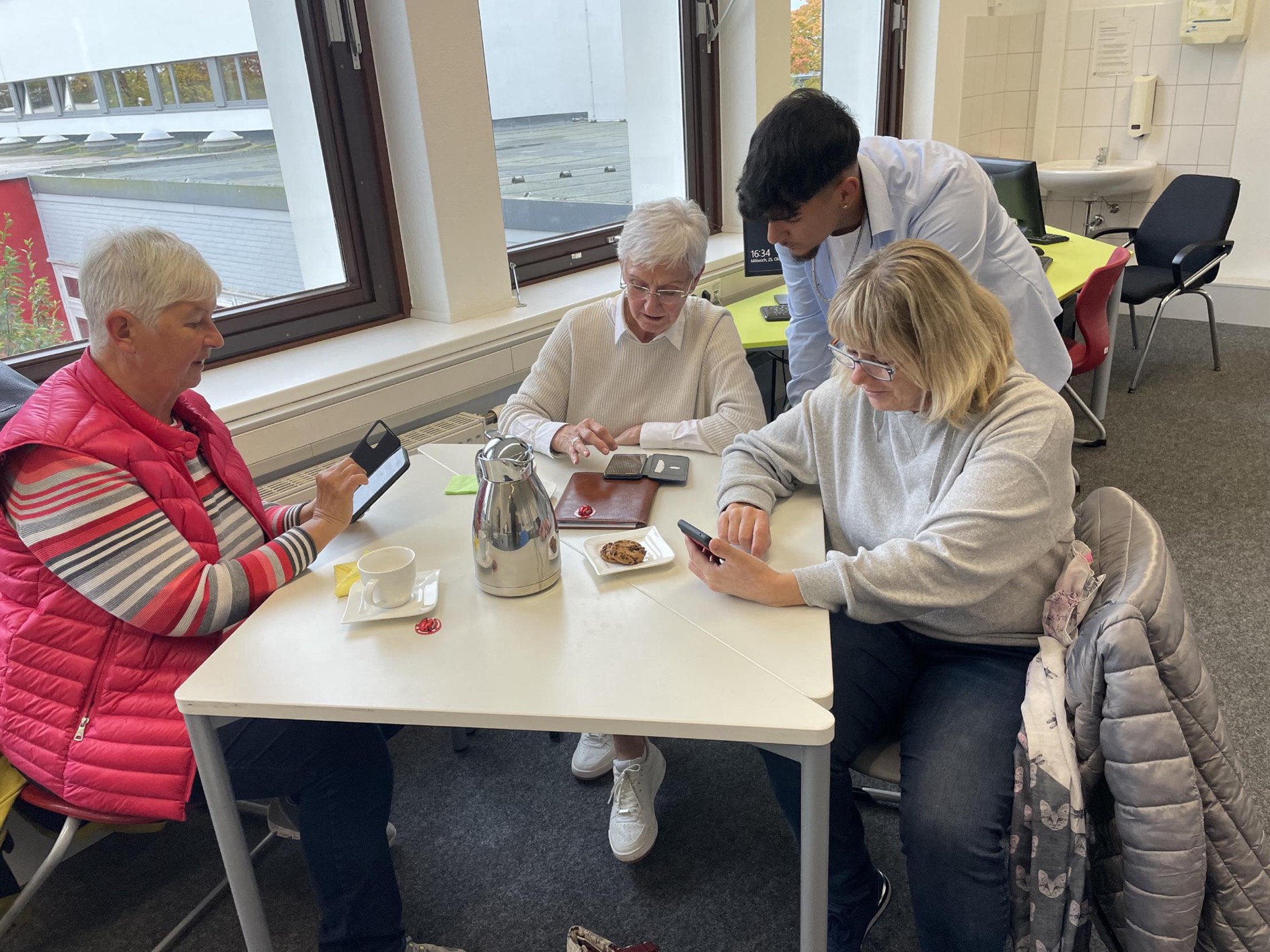 Fünf Schülerinnen und Schüler der 12. Klasse unseres Wirtschaftsgymnasiums (Jana, Jannis, Jan, Seyed und Sipan) hatten auf Anregung der Landfrauen einen Nachmittag zum Thema „Fotobearbeitung und Collagenerstellung am Handy“ vorbereitet. In Kleingruppen wurden zunächst verschiedene Möglichkeiten der Fotobearbeitung und des Teilens von Fotos erarbeitet. Nach einer gemeinsamen Pause mit Kaffee und Kuchen (natürlich von den Landfrauen gebacken😉), widmete man sich der Erstellung von Collagen. Bei dem abschließenden „Collagenwettbewerb“ waren alle Ergebnisse der Damen gelungen, so dass es 10 erste Plätze gab. Alle Beteiligten fanden den Nachmittag gelungen und gingen zufrieden nach Hause.